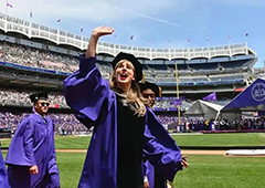 2022年5月18日,纽约洋基体育场是紫罗兰的海洋。纽约大学2022届毕业典礼在这里举行。11座格莱美奖得主Taylor Swift也在NYU今年全校毕业典礼上被授予艺术博士,并给全体师生家长亲友发表了真挚的演讲。